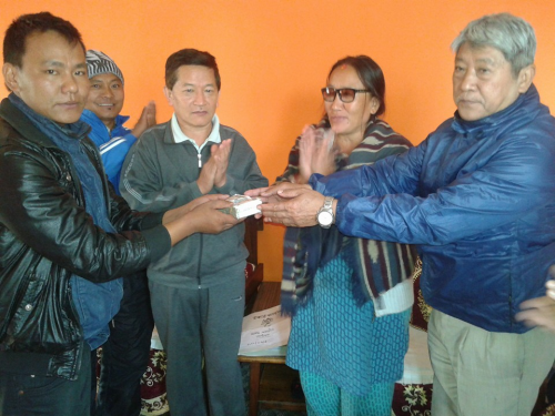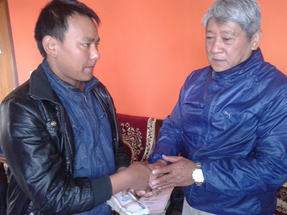 यस जिमी (राई) उत्थान समाज सोलुले नेचाबतासे वडा नं. ६ निबासी दुर्योधन राईको छोरी ७ बर्षीय एन्जिला राई २ बर्ष देखी S.L.E. नामक रोगबाट ग्रसित भएको कारण समाजका उपाध्यक्ष श्री प्रेम कुमारी राईको संयोजकत्वमा कोरियामा रहनु भएका सोलु नेचाबासी दाजु भाई तथा दिदीबहिनीहरुबाट कोरियामा रहनु भएका सोलु निबासी श्री राम बहादुर राईज्युको बिशेष पहलमा उठेको रकम रु.१,५१,०००/- संयोजकज्युबाट प्राप्त भएकोले आजै मिति ०७२ मंसिर १४ गते उहांकै निबास बानेश्वरमा निज बिरामीका पिता दुर्योधन राईलाई संस्थाका अध्यक्ष श्री यस बहादुर राईज्युबाट हस्तान्तरण गरियो । यसरी उपचारको लागी आर्थिक सहयोग गर्नु हुने सोलुनेचा बासी र बिशेष पहल गर्नु हुने राम बहादुर राईज्युलाई समाजको तर्फबाट हार्दिक धन्यवाद ब्यत्त गर्दै यहाँको उत्तरोत्तर प्रगतीको कामना गर्दछौं ।