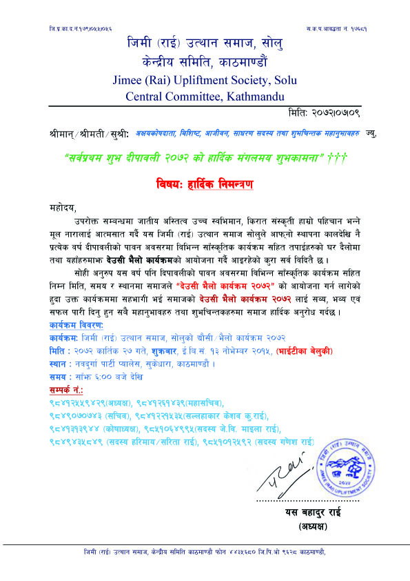 द्यौसी/भैलो कार्यक्रम २०७२ सम्बन्धी कार्या तालिका